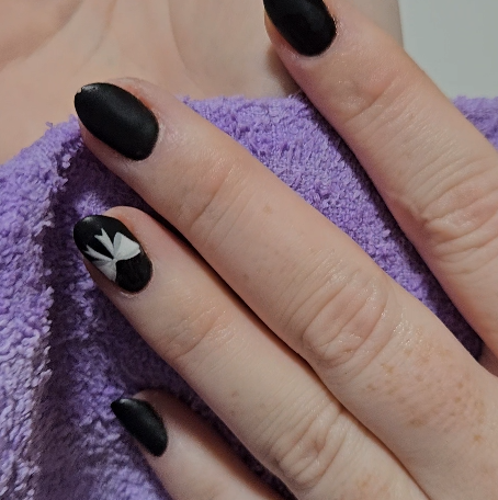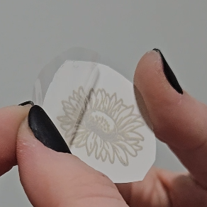 Mit trocknen Händen packst Du das Tattoo jetzt aus und entfernst die transparente Schutzfolie. Die Seite, die nach oben zeigen soll beim Anbringen des Tattoos ist mit pinken Blumen bedruckt.