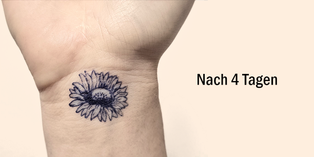 Um Dein Tattoo haltbarer zu machen vermeide den Kontakt mit Wasser und Reibung für die nächsten 8 Stunden. Es ist förderlich die Stelle mit lockerer Kleidung abzudecken, um ein Abfärben zu vermeiden.